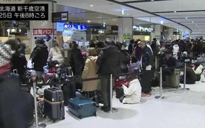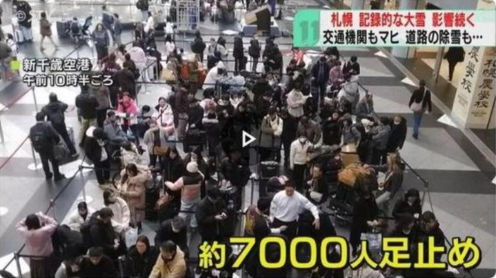 7000多名游客就这么被困在了新千岁机场,只能在航站楼里过夜。