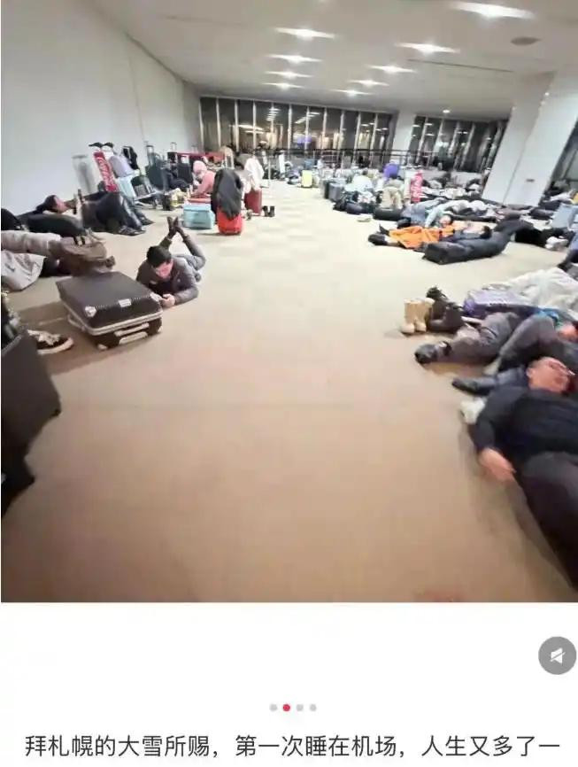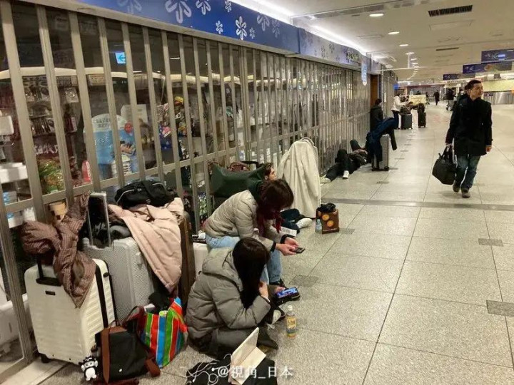 还有人晒出照片,值机大厅里到处都是席地而睡的人,大家裹着机场发的薄毯蜷缩在墙角,札幌站附近的地下通道里,25号晚上就有340人在那过夜,其中大多是中国游客。
