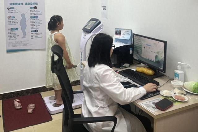 广东省妇幼保健院体重管理门诊医生为儿童进行体重管理指导。新华社发
